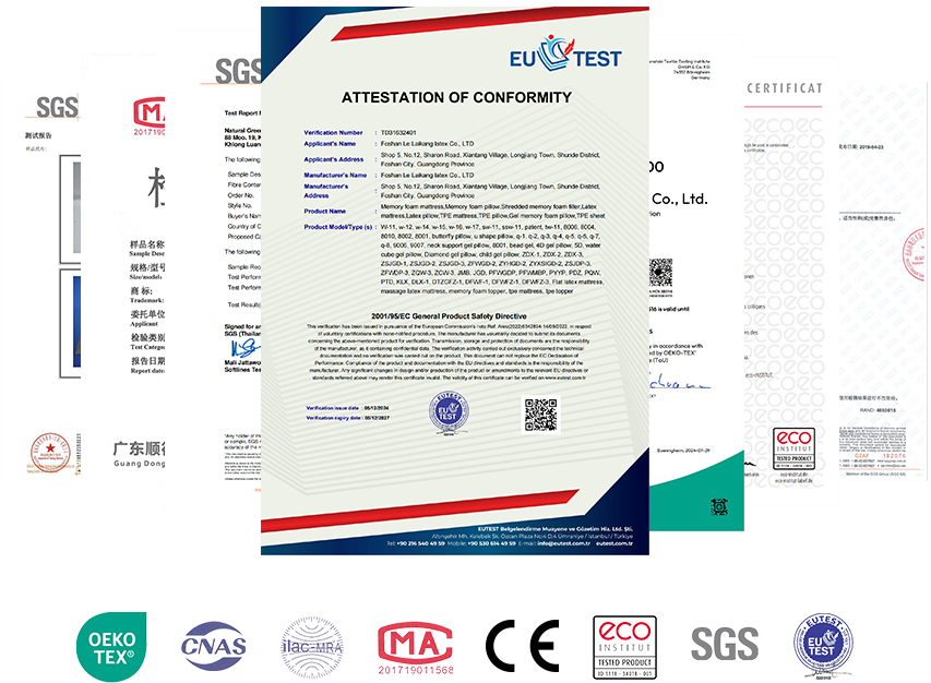 We have a 10,000-square-foot showroom and a production base covering 200,000 square feet. With three factory production lines, we achieve an annual output of 3,000,000 pillows and 30,000,000 mattresses. We have obtained certifications for international standards and quality management systems such as SGS, CE, and OEKO-Tex. Our products are now exported to Japan, South Korea, Europe, the United States, and many other countries. We are dedicated to providing global customers with the ultimate comfort for sleep and rest.